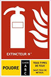 Chaque extincteur nécessite une signalisation qui lui est propre, ces panneaux indiquent à quelle classe de feu est destiné un extincteur.